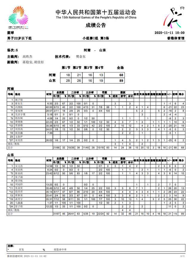 恭喜巩晓彬!山东U22男篮以89-68大胜河南队21分,斩获了十五运的开门红。段昂君爆发,砍下22分,曲笑宇22分13篮板,陈家政15分。