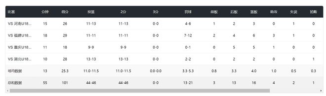 场均13分钟,拿到25.3分4篮板1助攻,命中率95.6%,张子宇在她这个U18级别里感觉比奥尼尔还要恐怖,她真的不该去打U18该直接打成年组。