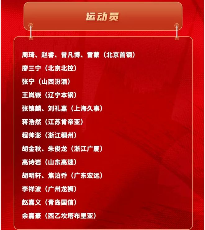 广州队李祥波再次入选。李祥波全运会场均11分5篮板2.8助攻,表现还不错,帮助山东队取得不错战绩。面对银牌球队浙江队得到22分8篮板展现实力。